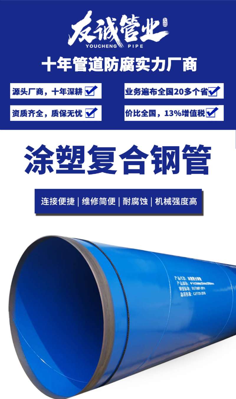 涂塑鋼管既有鋼管和塑料管材各自的優點,又拋棄了兩種管材的缺點。保留了鋼管的機械強度特點,又有塑料管材的流體輸送阻力小、衛生性能優良優點,強化了抗阻燃效果。涂塑鋼管以螺旋焊管、無縫鋼管為基管,使用改性環氧粉末進行內外管壁涂覆。涂層吸附力強,能禁得住高強的機械碰撞。