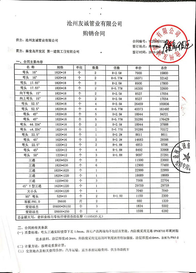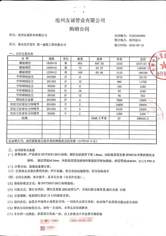秦皇島開(kāi)發(fā)區(qū)第一建筑工程有限公司與我公司,2016年簽訂秦皇島開(kāi)發(fā)區(qū)引青供水工程項(xiàng)目防腐管道合同,我們已最優(yōu)質(zhì)的產(chǎn)品質(zhì)量,順利愉快的完成了這次合作,感謝客戶對(duì)我們的信賴,我公司將一如既往再創(chuàng)輝煌